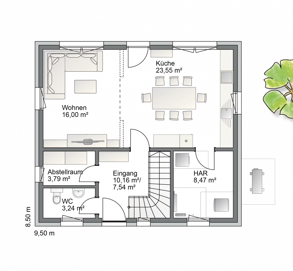 8,50 ⨯ 9,50 m