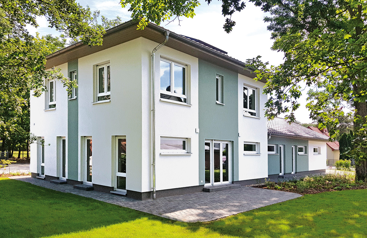 Wohnen kann ganz neu gedacht werden. Insbesondere das Mehrgenerationen-Wohnen ist hier auf verschiedene Weisen möglich. Egal ob jede Familie Ihren eigenen Hauseingang bevorzugt, wie in unserem Beispiel, oder es nur einen Hauseingang mit einer wohnlichen Trennung im Haus gibt – jeder für sich, aber dennoch gemeinsam Wohnen, ist hier die Devise. Das neue Musterhaus lädt schon von außen durch die liebevoll und detailreich gestaltete Gebäudehülle zum Besichtigen ein.